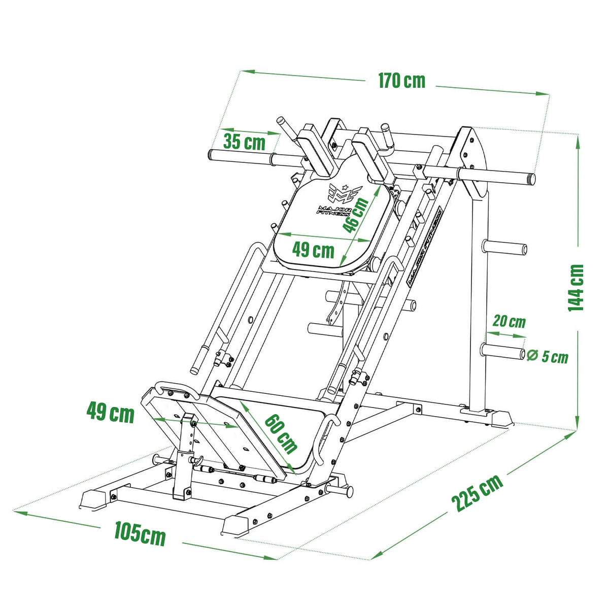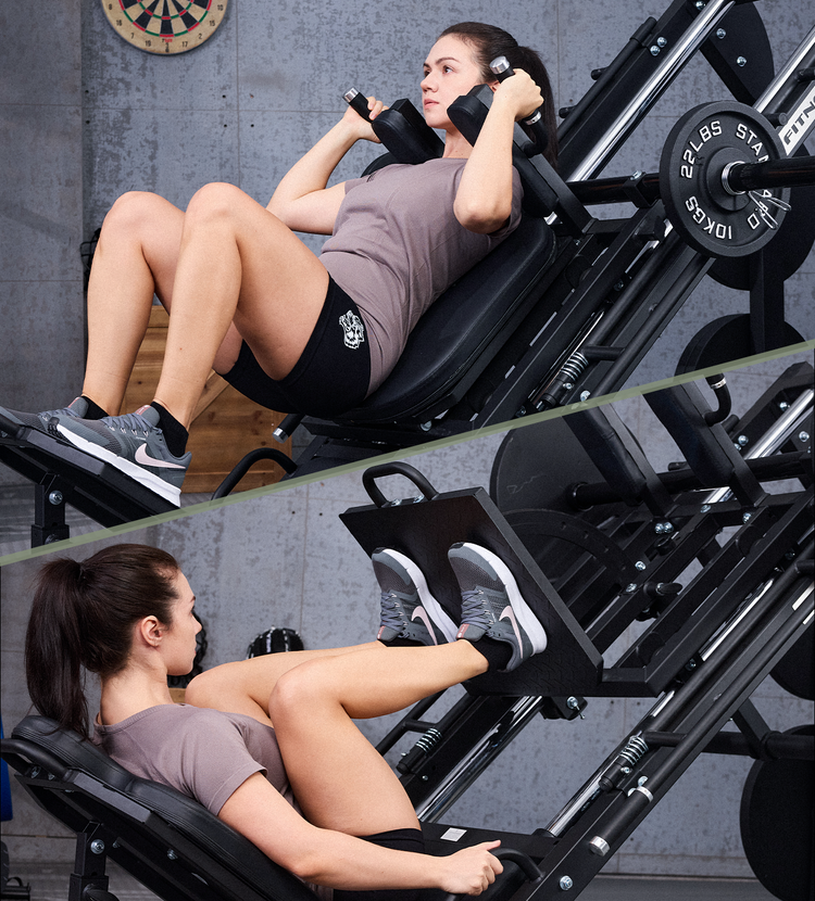The AH1 is primarily designed for leg press and hack squat exercises, but it can also be used for reverse hack squats and calf raises. This versatility allows users to target multiple lower body muscle groups, including the quadriceps, hamstrings, glutes, and calves.