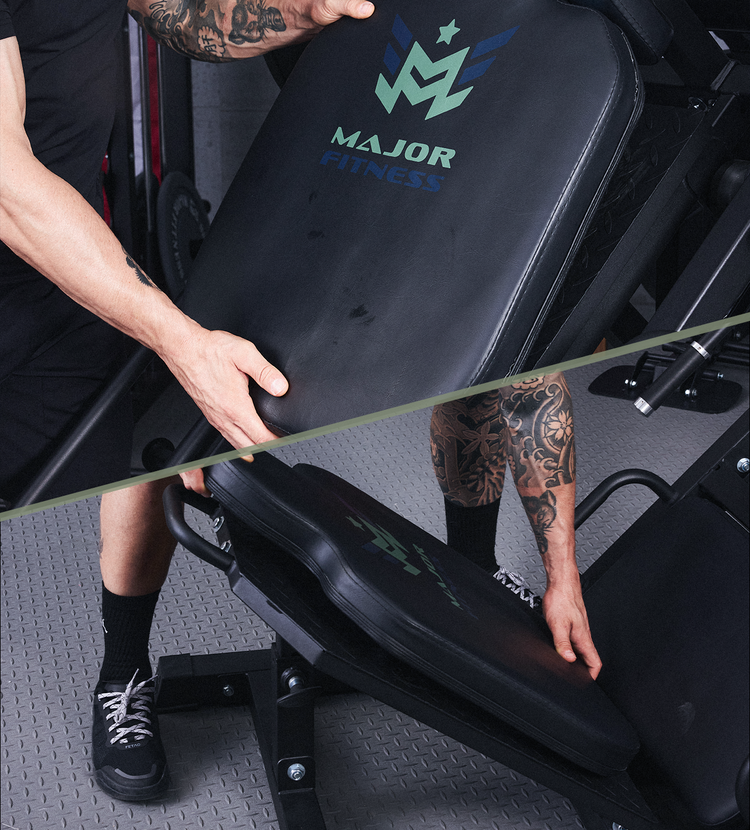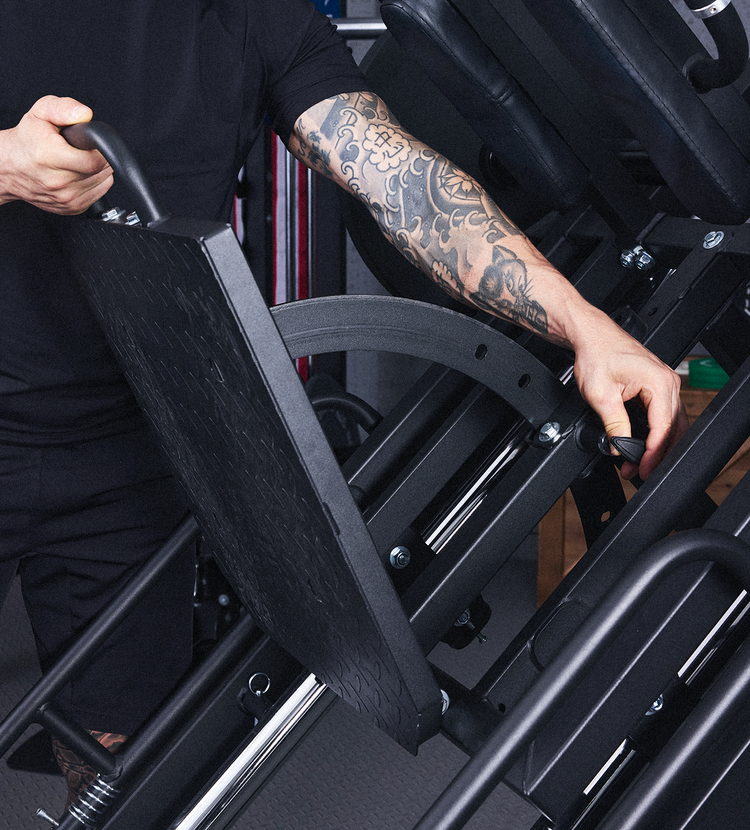 Switching between leg press and hack squat modes on the AH1 is simple and quick. You only need to install the backrest pad on either the upper or lower footplate to convert between these two functions in under a minute.