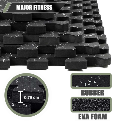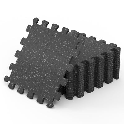 Sold in sets of 16, each of these 50.8×50.8 cm rubber flooring mats covers 2.7 square feet, enabling you to provide protection for the floors beneath your home gym equipment. We recommend using six to eight mats for weight benches, 12 to 16 mats for power racks, and 16 to 20 mats for Smith machines. The tiles are 0.79 cm thick and allow you to create a protective barrier between your flooring and equipment.